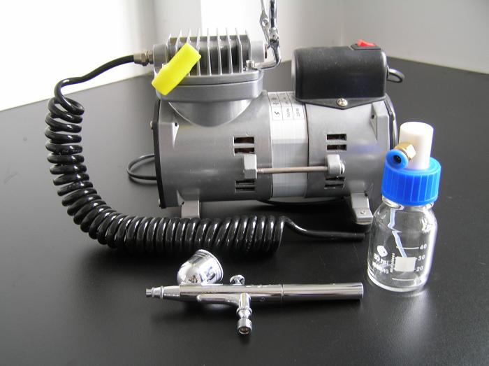 儀器組成 空壓機、聚四氟乙烯噴霧頭A、超細噴霧頭B;