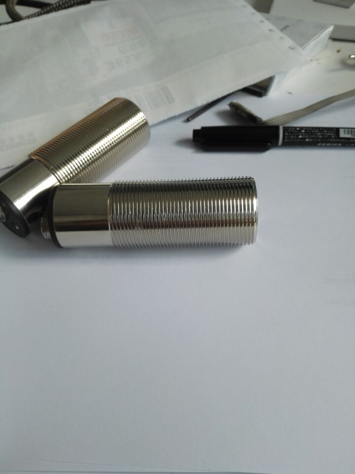 2:輸出引腳定義: 1(棕/紅色):VCC (電源正極) 2(黑色):GND (電源負極,信號公共端) 3(黃色):A (接收器同相輸入端和驅動器同相輸出端) 4(藍色):B (接收器反相輸入端和驅動器反相輸出端) 三:傳感器量程設置和校準(出廠時已校準): 1:校準最遠點 按下開關“K”(約1秒)一次,此時LED變為綠色,將傳感器對準距傳感頭1米目標平面(傳感器與目標平面垂直)按下“K”(約5秒)直至LED 熄滅,此時傳感器與目標之間的距離被標定為輸出1米 2:校準最遠近點 按下開關“K”(約1秒)兩次,此時LED變為紅色,將傳感器對準距傳感頭0.15米目標平面(傳感器與目標平面垂直)按下“K”(約5秒)直至LED 熄滅,此時傳感 器與目標之間的距離被標定為輸出0.15米 四:傳感器數據處理方式設定 傳感器在未收到目標反射回波信號時的處理方式為: 1:保持上次輸出不變(出廠時為該狀態,適用于料位,液位測量等目標在超聲波束軸線方向上移動的場合)。 設定方法: 按住按鍵:“K”不放-à接通傳感器電源-à在指示燈變為紅色后放開按鍵。 2:輸出最大值(適用于目標從超聲波束側面進入的場合) 設定方法: 按住按鍵:“K”不放-à接通傳感器電源-à在指示燈變為綠色后放開按鍵。 五:輸出: 輸出為RS485接口 通訊格式: 1、半雙工異步方式,波特率: 9600bps。 2、每楨數據共有11位二進制數:D0,D1,D2,D3,D4,D5,D6,D7,D8,D9,D10,其定義為: D0:起始位(=0) D1-D8:數據位 D9:地址、數據識別位(發地址:D9=1;發數據:D9=0) D10:停止位(=1) 3、握手方式: 主機:讀取距離數據,發送地址(1-253)二進制源碼,之后查詢接收數據。 從機:收到地址信號后應答,每次發送4個字節 從機返回數據:DB0,DB1,DB2,DB3 DB0:本機地址 DB1,DB2:距離值(由DB1為高位,DB2為低位組成的十六位二進制原碼)(距離單位為:毫米) DB3:DB0,DB1,DB2的累加和低位 例:從機發送的數據為:01H,12H,34H,47H 表示:01號傳感器輸出的距離為:4660mm *傳感器與目標物距離超過量程時,輸出為最大3米 4:傳感器出廠時的地址為01H,多機通信時任意傳感器都地址不能為01H。 更改傳感器地址:主機發送:FFH(D9=1)+ 傳感器地址(傳感器地址不能為FFH,FEH)+AAHà 從機返回數據:DB0,DB1,DB2,DB3 *以上設置時傳感器與目標物之間的距離應在0.15-1米之間 四:安裝: 開孔直徑:30MM 傳感頭前端各方向半徑0.3米范圍內應無障礙物,以免由于雜亂的回波影響傳感器正常工作。 用隨機附帶的螺母將傳感器固定,傳感器固定力矩<10N/M,以免損壞傳感器 注意: 1:傳感器固定板不能有強烈的機械振動,工作環境應無強烈高頻噪聲和強電磁干擾。 2:傳感器外殼與“GND”端相通,請注意與其它設備的隔離。 3:傳感頭是精密器件,請勿壓,劃傷。